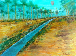 2022Hoofd rubriek voor de expositie Heimee op 16 september- 7 oktober 2022 Een meisje die kijkt naar de molen en mist mensen omheen. brood en uien is een Irakees traditie voor welkom en voor sociaal betrokkenheid